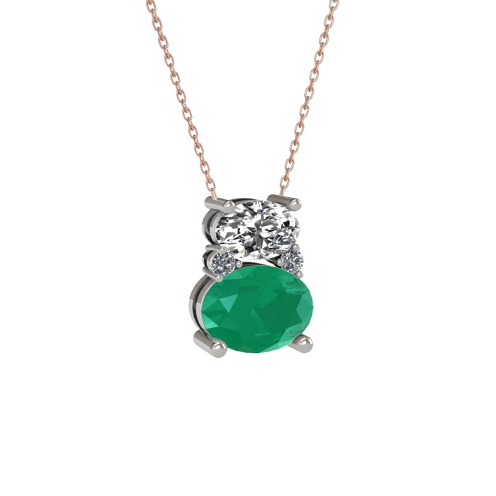 Beyaz zirkon, kök zümrüt ve pırlanta 14 ayar beyaz altın kolye (0.036 karat, 40 cm gümüş rolo zincir)