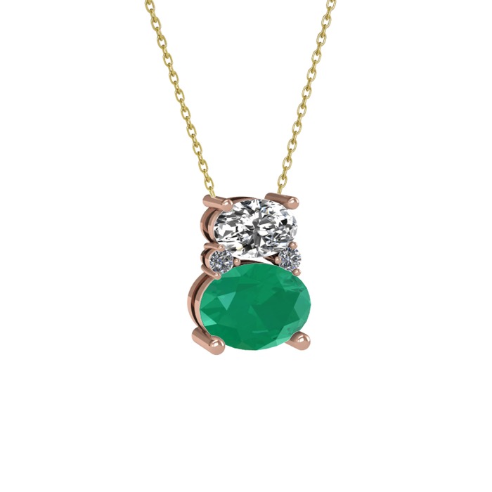 Beyaz zirkon, kök zümrüt ve pırlanta 925 ayar rose altın kaplama gümüş kolye (0.036 karat, 40 cm altın rolo zincir)