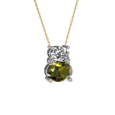 Beyaz zirkon, peridot ve swarovski 18 ayar beyaz altın kolye (40 cm altın rolo zincir)