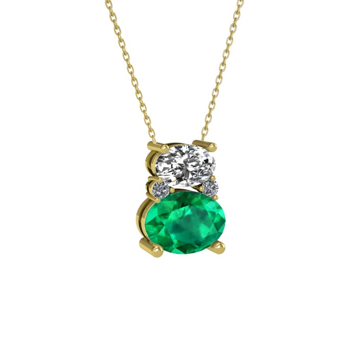 Beyaz zirkon, yeşil kuvars ve pırlanta 14 ayar altın kolye (0.036 karat, 40 cm altın rolo zincir)