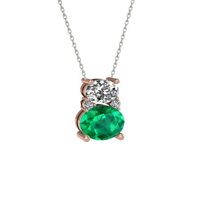 Beyaz zirkon, yeşil kuvars ve swarovski 8 ayar rose altın kolye (40 cm gümüş rolo zincir)