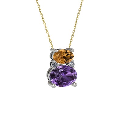 Dumanlı kuvars, ametist ve pırlanta 18 ayar beyaz altın kolye (0.036 karat, 40 cm gümüş rolo zincir)