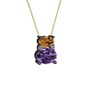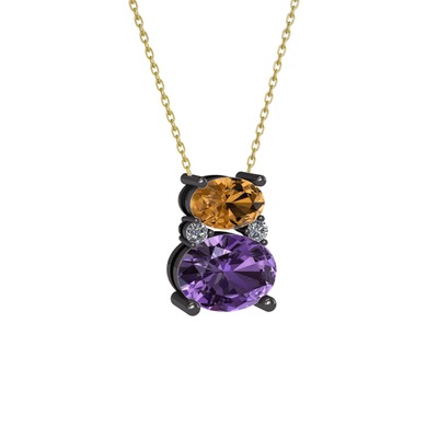 Dumanlı kuvars, ametist ve pırlanta 925 ayar siyah rodyum kaplama gümüş kolye (0.036 karat, 40 cm altın rolo zincir)