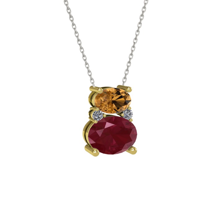 Dumanlı kuvars, kök yakut ve pırlanta 8 ayar altın kolye (0.036 karat, 40 cm beyaz altın rolo zincir)