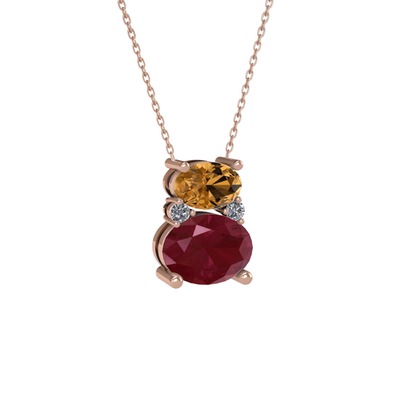 Dumanlı kuvars, kök yakut ve pırlanta 8 ayar rose altın kolye (0.036 karat, 40 cm rose altın rolo zincir)