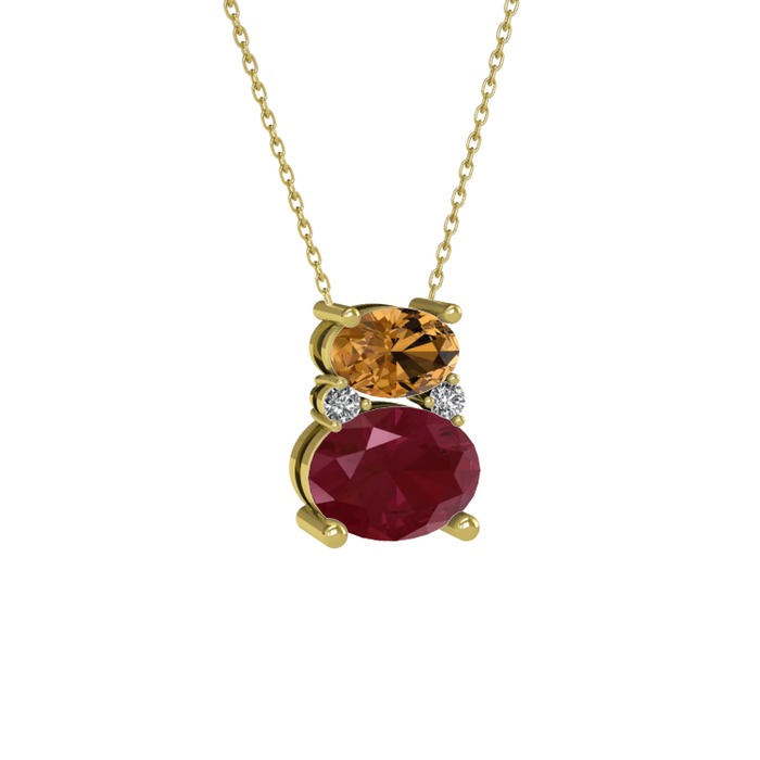 Dumanlı kuvars, kök yakut ve swarovski 8 ayar altın kolye (40 cm altın rolo zincir)