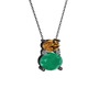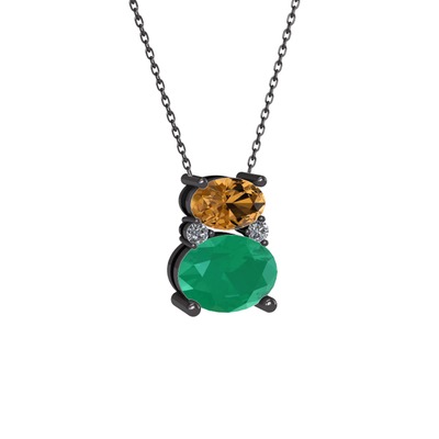 Dumanlı kuvars, kök zümrüt ve pırlanta 925 ayar siyah rodyum kaplama gümüş kolye (0.036 karat, 40 cm gümüş rolo zincir)