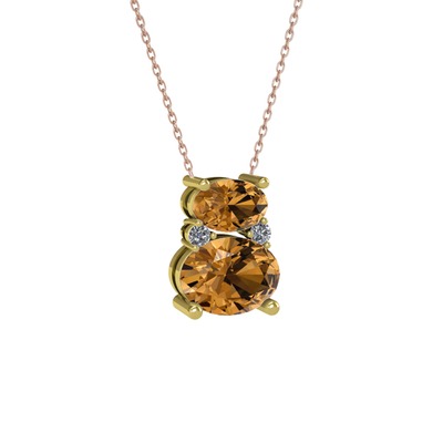 Dumanlı kuvars ve pırlanta 18 ayar altın kolye (0.036 karat, 40 cm gümüş rolo zincir)