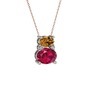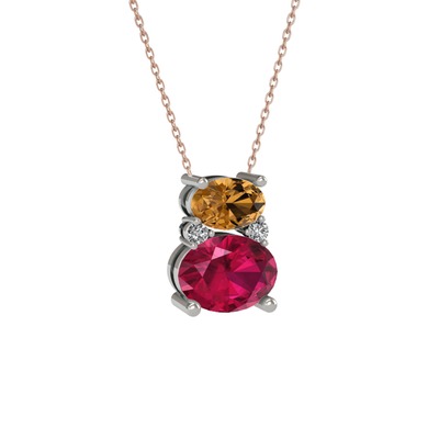 Dumanlı kuvars, rodolit garnet ve swarovski 8 ayar beyaz altın kolye (40 cm gümüş rolo zincir)