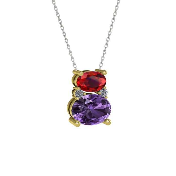 Garnet, ametist ve pırlanta 14 ayar altın kolye (0.036 karat, 40 cm beyaz altın rolo zincir)