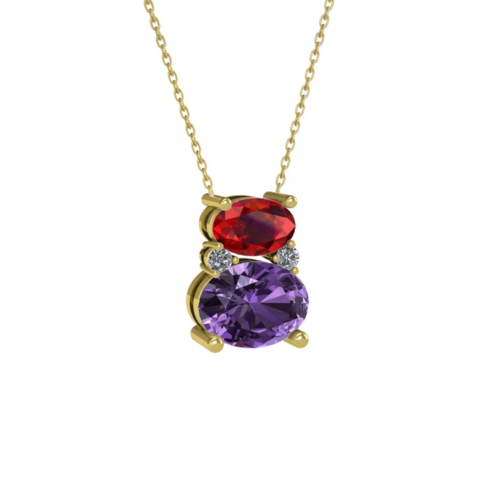 Garnet, ametist ve pırlanta 8 ayar altın kolye (0.036 karat, 40 cm altın rolo zincir)