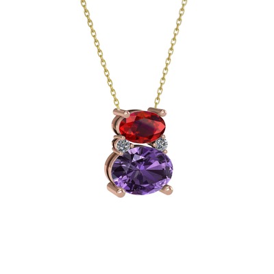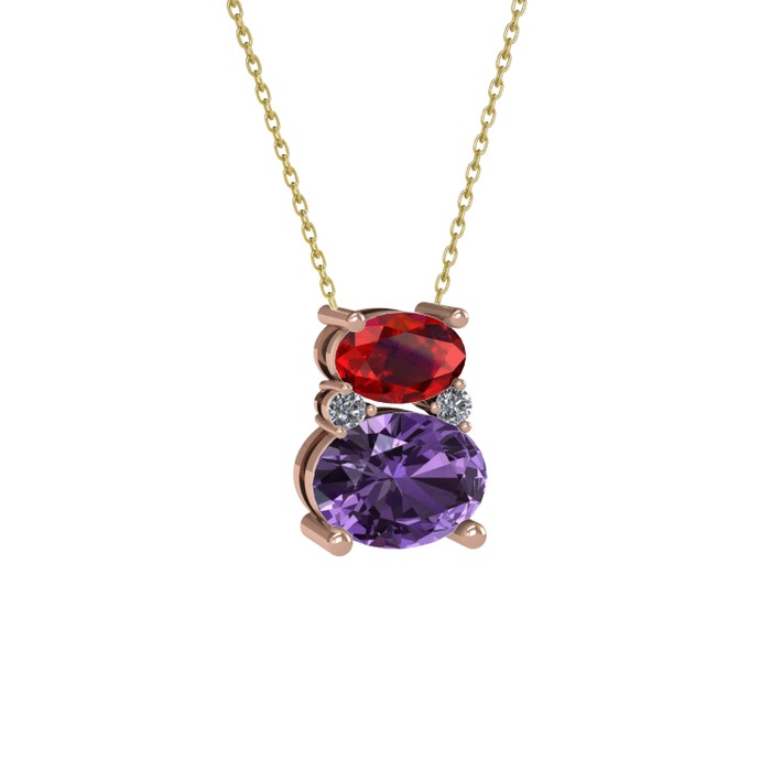 Garnet, ametist ve pırlanta 8 ayar rose altın kolye (0.036 karat, 40 cm altın rolo zincir)
