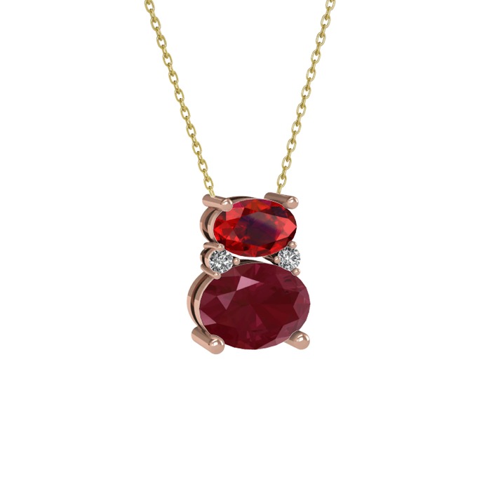 Garnet, kök yakut ve swarovski 14 ayar rose altın kolye (40 cm gümüş rolo zincir)