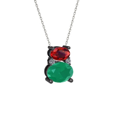 Garnet, kök zümrüt ve pırlanta 925 ayar siyah rodyum kaplama gümüş kolye (0.036 karat, 40 cm gümüş rolo zincir)