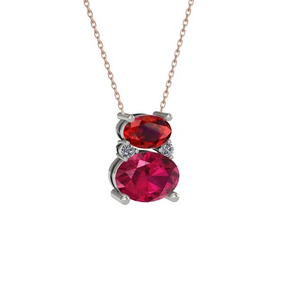 Garnet, rodolit garnet ve pırlanta 18 ayar beyaz altın kolye (0.036 karat, 40 cm rose altın rolo zincir)