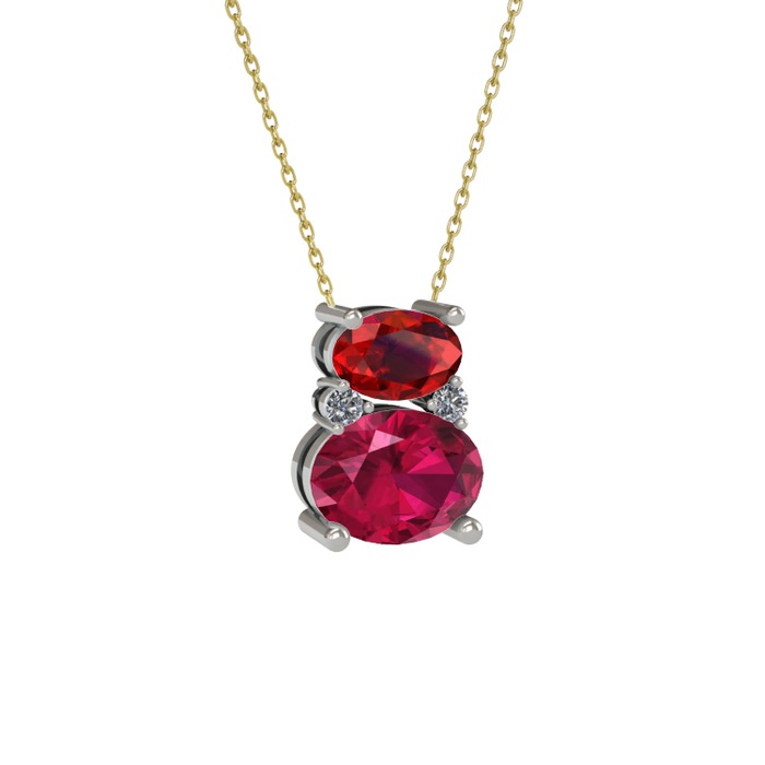 Garnet, rodolit garnet ve pırlanta 925 ayar gümüş kolye (0.036 karat, 40 cm altın rolo zincir)