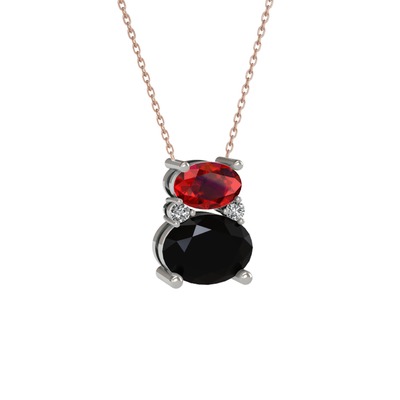 Garnet, siyah zirkon ve swarovski 8 ayar beyaz altın kolye (40 cm gümüş rolo zincir)