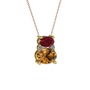 Kök yakut, dumanlı kuvars ve pırlanta 14 ayar altın kolye (0.036 karat, 40 cm gümüş rolo zincir)