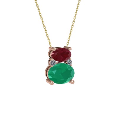Kök yakut, kök zümrüt ve pırlanta 8 ayar rose altın kolye (0.036 karat, 40 cm gümüş rolo zincir)