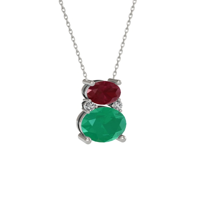 Kök yakut, kök zümrüt ve swarovski 14 ayar beyaz altın kolye (40 cm beyaz altın rolo zincir)