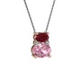 Kök yakut, pembe kuvars ve swarovski 8 ayar rose altın kolye (40 cm gümüş rolo zincir)
