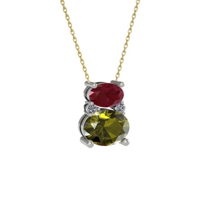 Kök yakut, peridot ve pırlanta 925 ayar gümüş kolye (0.036 karat, 40 cm altın rolo zincir)