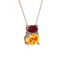 Kök yakut, sitrin ve pırlanta 925 ayar rose altın kaplama gümüş kolye (0.036 karat, 40 cm gümüş rolo zincir)