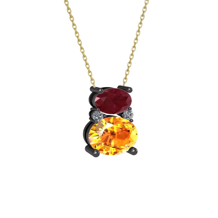 Kök yakut, sitrin ve pırlanta 925 ayar siyah rodyum kaplama gümüş kolye (0.036 karat, 40 cm altın rolo zincir)