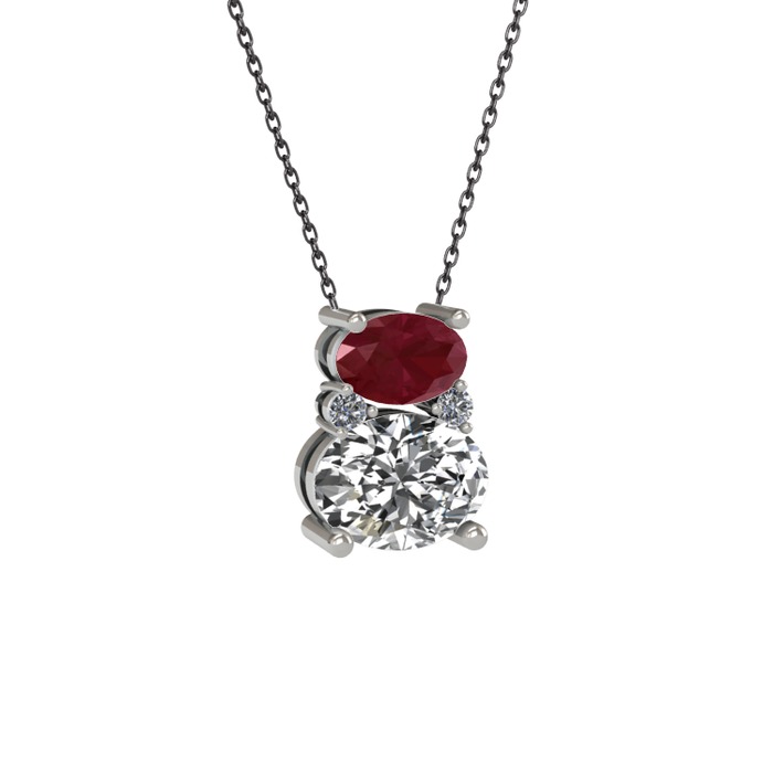 Kök yakut, swarovski ve pırlanta 925 ayar gümüş kolye (0.036 karat, 40 cm gümüş rolo zincir)