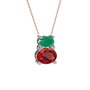 Kök zümrüt, garnet ve swarovski 18 ayar beyaz altın kolye (40 cm rose altın rolo zincir)