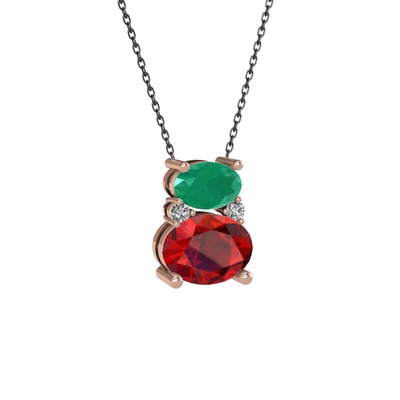 Kök zümrüt, garnet ve swarovski 8 ayar rose altın kolye (40 cm gümüş rolo zincir)