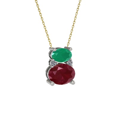 Kök zümrüt, kök yakut ve pırlanta 18 ayar beyaz altın kolye (0.036 karat, 40 cm altın rolo zincir)