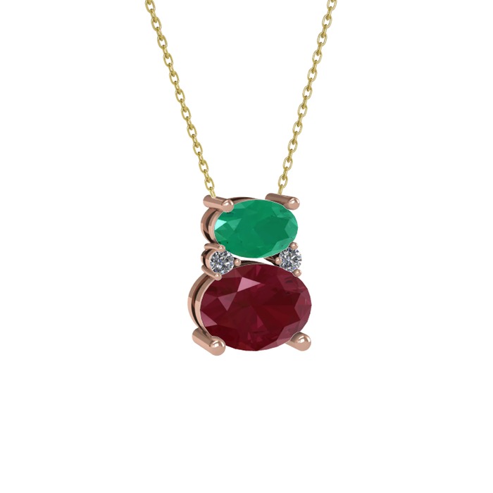 Kök zümrüt, kök yakut ve pırlanta 18 ayar rose altın kolye (0.036 karat, 40 cm gümüş rolo zincir)