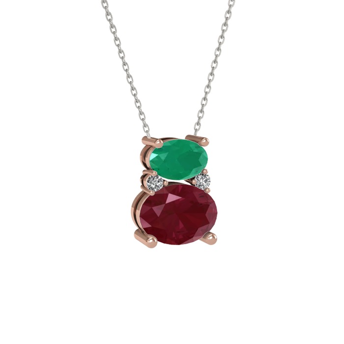 Kök zümrüt, kök yakut ve swarovski 14 ayar rose altın kolye (40 cm gümüş rolo zincir)