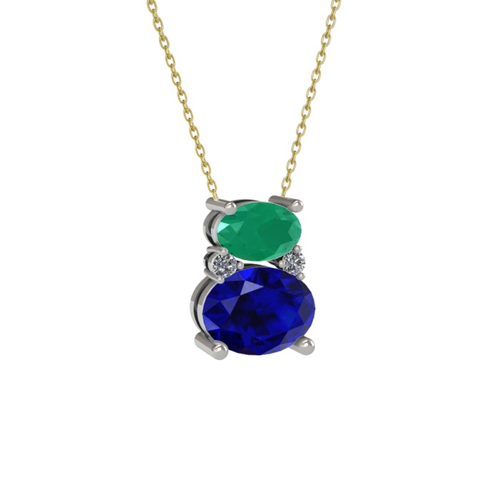Kök zümrüt, lab safir ve pırlanta 18 ayar beyaz altın kolye (0.036 karat, 40 cm gümüş rolo zincir)
