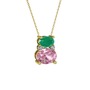 Kök zümrüt, pembe kuvars ve swarovski 925 ayar altın kaplama gümüş kolye (40 cm altın rolo zincir)