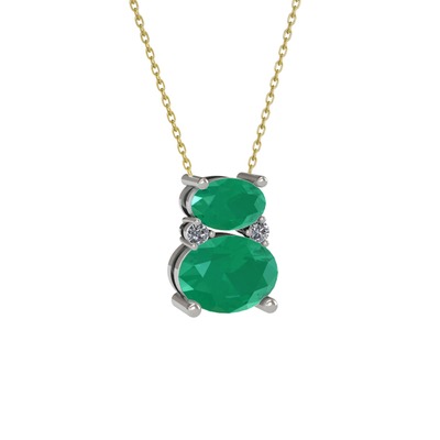 Kök zümrüt ve pırlanta 8 ayar beyaz altın kolye (0.036 karat, 40 cm altın rolo zincir)