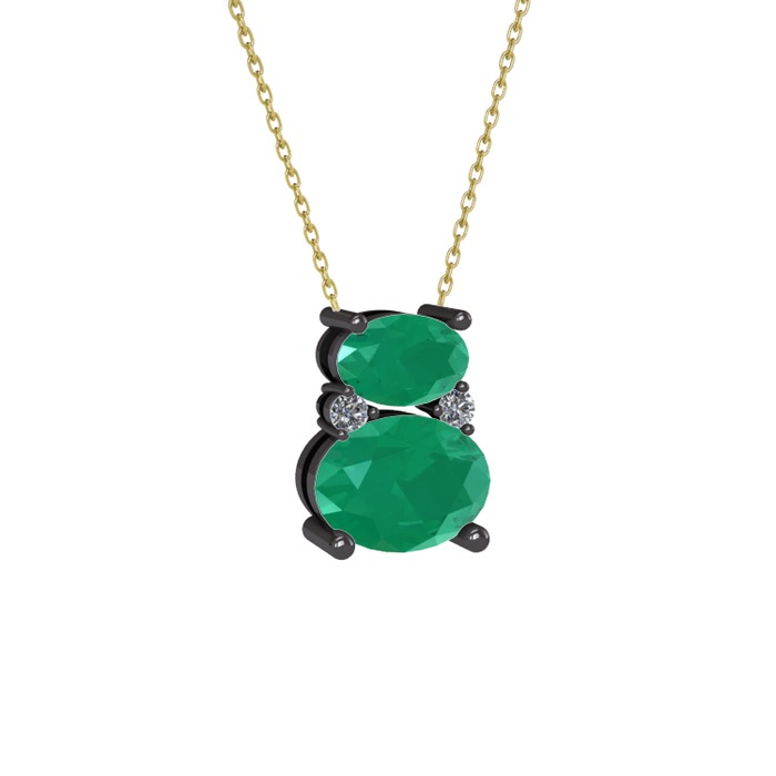 Kök zümrüt ve pırlanta 925 ayar siyah rodyum kaplama gümüş kolye (0.036 karat, 40 cm altın rolo zincir)