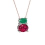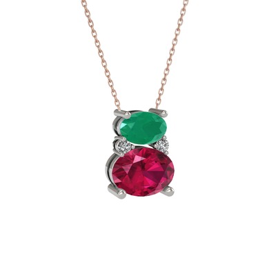 Kök zümrüt, rodolit garnet ve swarovski 8 ayar beyaz altın kolye (40 cm gümüş rolo zincir)