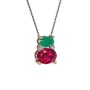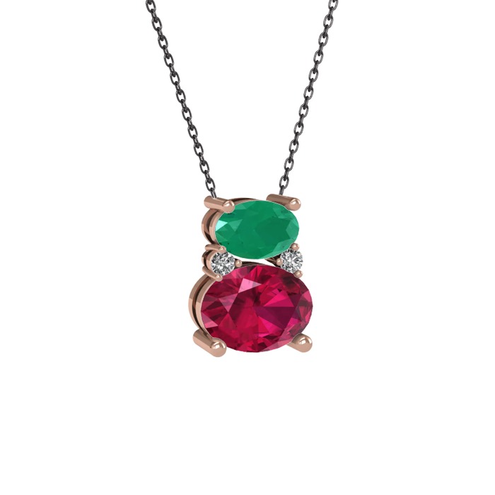 Kök zümrüt, rodolit garnet ve swarovski 8 ayar rose altın kolye (40 cm gümüş rolo zincir)