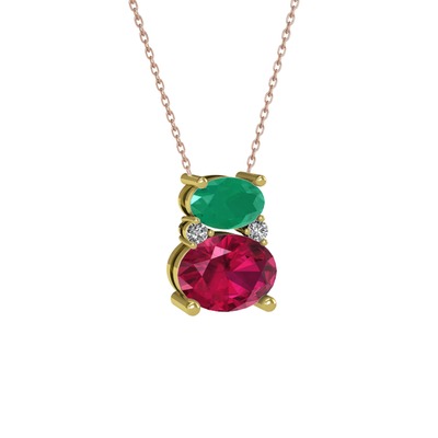 Kök zümrüt, rodolit garnet ve swarovski 925 ayar altın kaplama gümüş kolye (40 cm rose altın rolo zincir)
