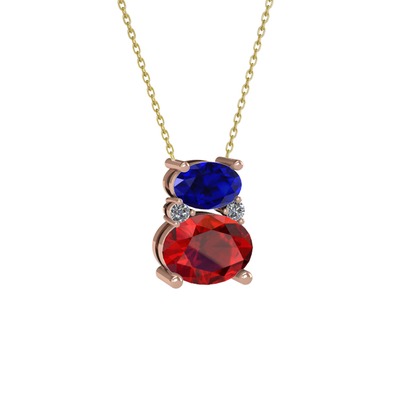 Lab safir, garnet ve pırlanta 14 ayar rose altın kolye (0.036 karat, 40 cm altın rolo zincir)