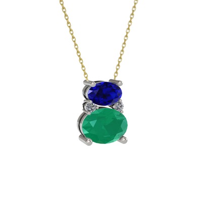 Lab safir, kök zümrüt ve pırlanta 14 ayar beyaz altın kolye (0.036 karat, 40 cm altın rolo zincir)