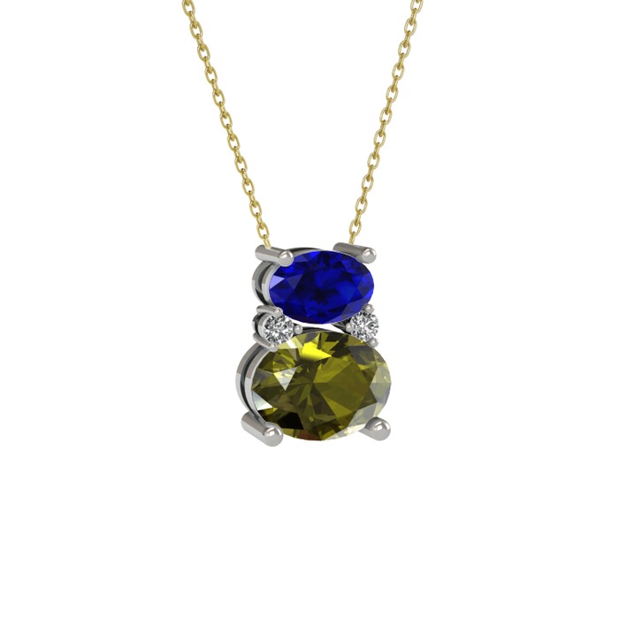 Lab safir, peridot ve swarovski 18 ayar beyaz altın kolye (40 cm altın rolo zincir)