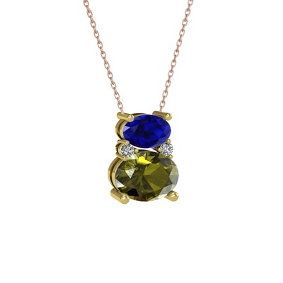 Lab safir, peridot ve swarovski 925 ayar altın kaplama gümüş kolye (40 cm rose altın rolo zincir)