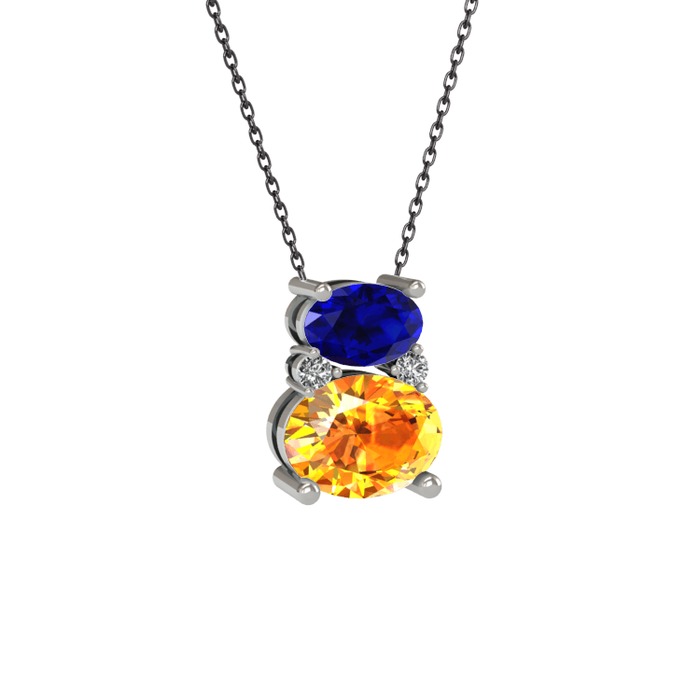 Lab safir, sitrin ve swarovski 14 ayar beyaz altın kolye (40 cm gümüş rolo zincir)