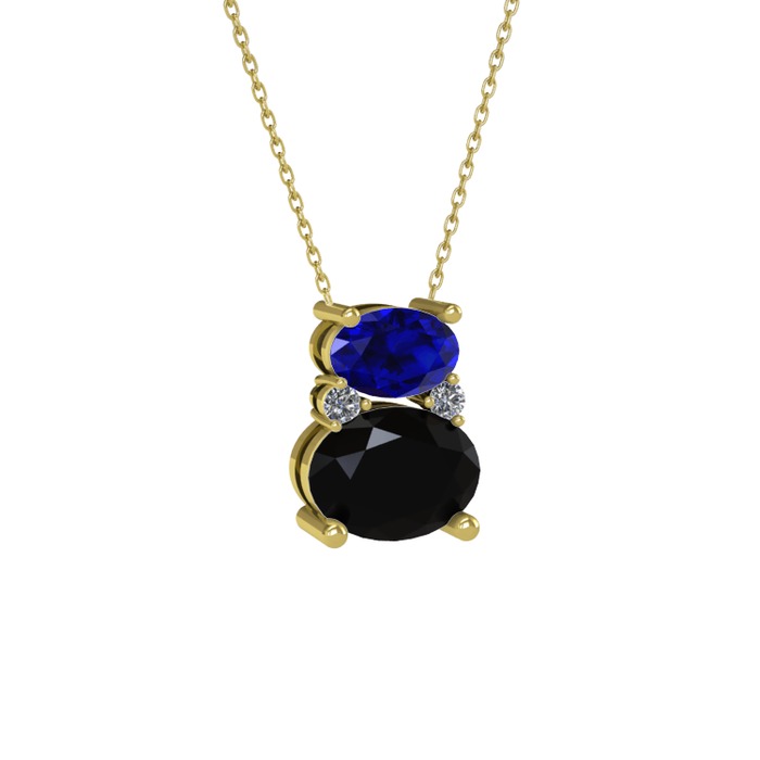 Lab safir, siyah zirkon ve pırlanta 14 ayar altın kolye (0.036 karat, 40 cm altın rolo zincir)