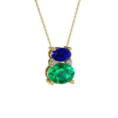 Lab safir, yeşil kuvars ve swarovski 14 ayar altın kolye (40 cm altın rolo zincir)