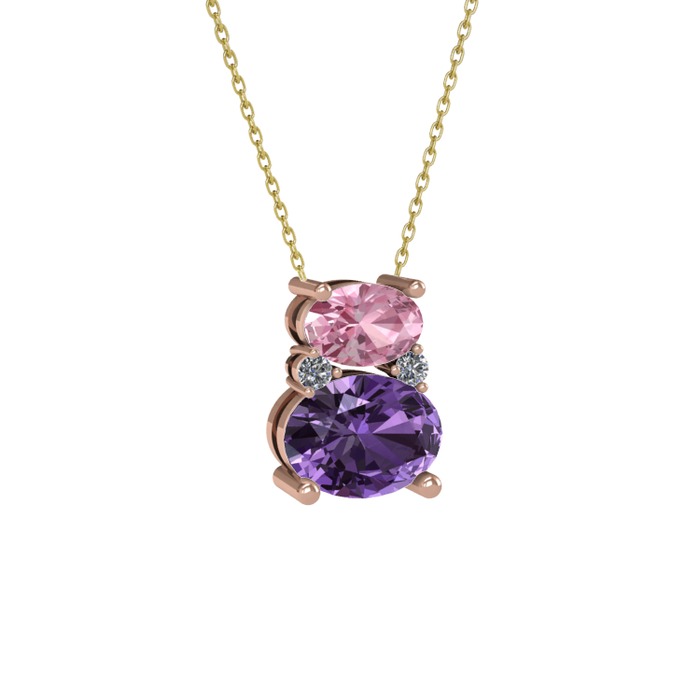 Pembe kuvars, ametist ve pırlanta 8 ayar rose altın kolye (0.036 karat, 40 cm altın rolo zincir)
