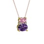 Pembe kuvars, ametist ve swarovski 8 ayar altın kolye (40 cm gümüş rolo zincir)